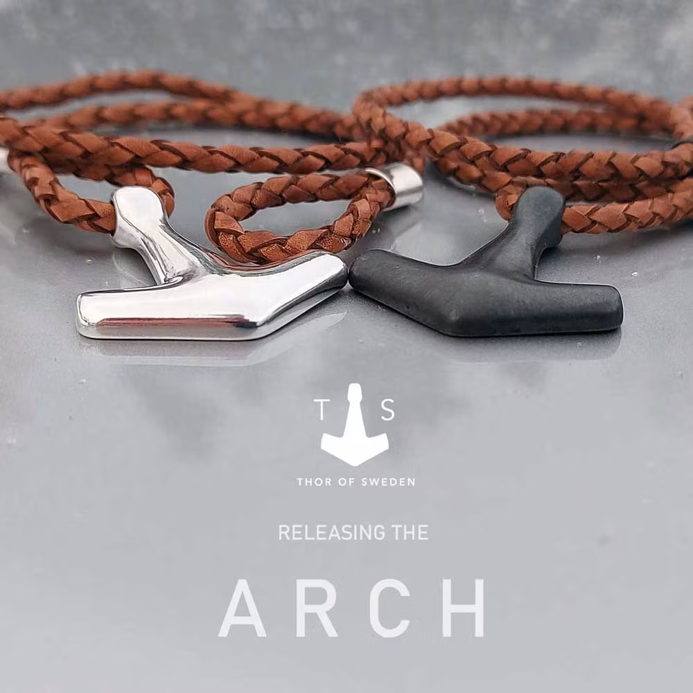 Arch Hammar armbånd - et armbånd der får dig til at "blive et" med ÅskGuden Thor. Den er lavet af genanvendt Sterling Sølv 935 af højeste kvalitet, som derefter oxideres til den kølige sorte rå finish og ægte læderrem. "Arch" i betydningen "fuldført" er den nyere version af vores kollektion Hammer of Thor. Et perfekt & episk design, som vi kalder "større, bedre, dristigere". Produktionen foregår som altid, her i vores studie og støberi i Sverige, i hånden med de bedste forudsætninger for et armbånd, du aldrig vil tage af.