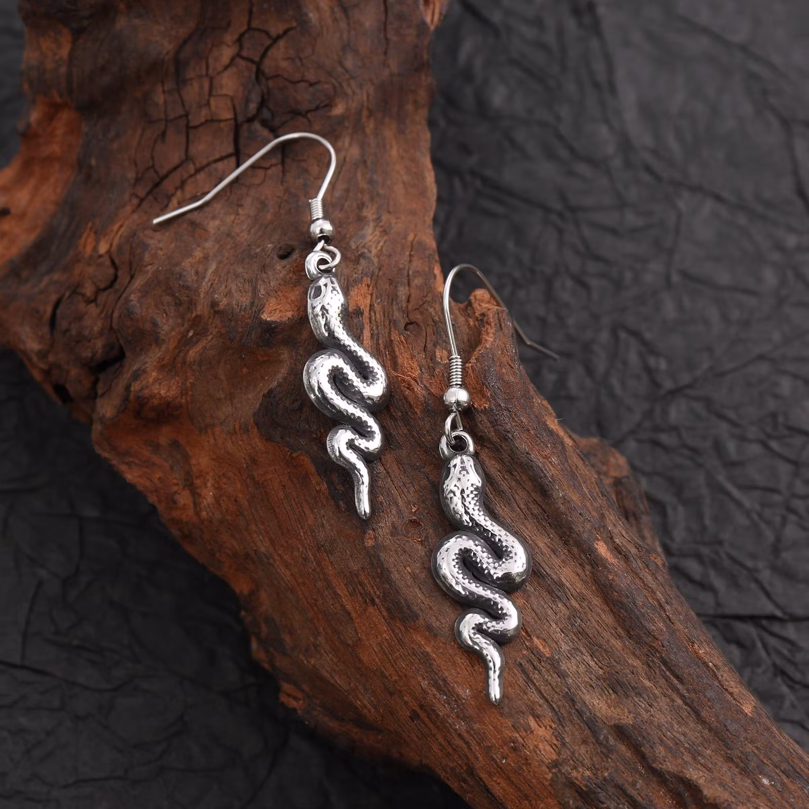 Tyylikkäät Viking-korvakorut, joissa käärme Jörmungandr-aihe. Korvakorut ovat korkealaatuista ruostumatonta terästä ja sopivat useimmille ihmisille.